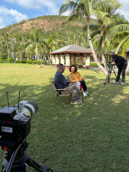 เมื่อ พี่มะเดี่ยว–ชูเกียรติ ศักดิ์วีระกุล ให้สัมภาษณ์กับสื่อยักษ์ใหญ่ระดับนานาชาติ CCTV ภายในงาน Hainan Island International Film Festival 2025